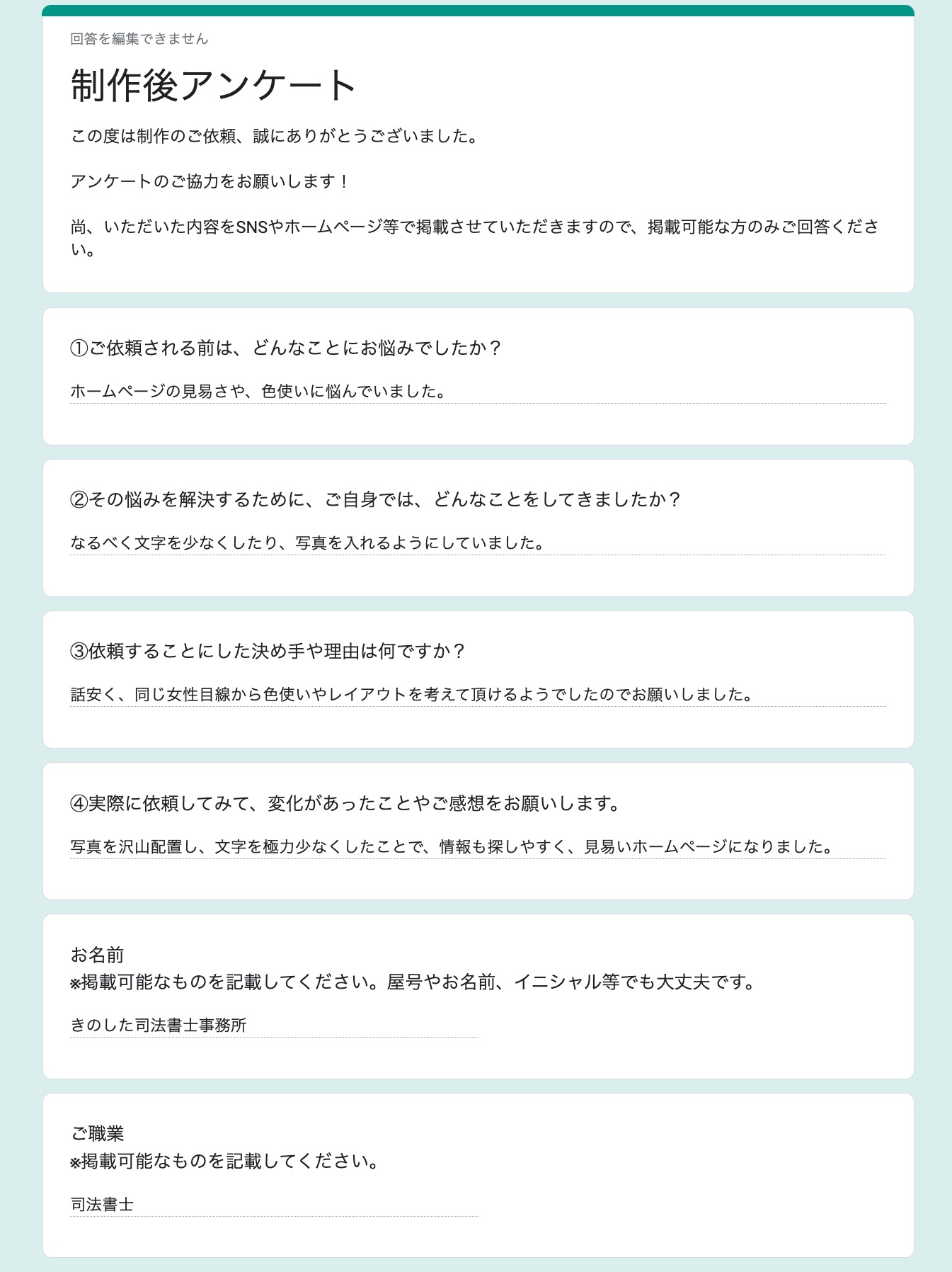 ホームページのリニューアルをさせていただいた きのした司法書士事務所さまより、感想をいただきました。